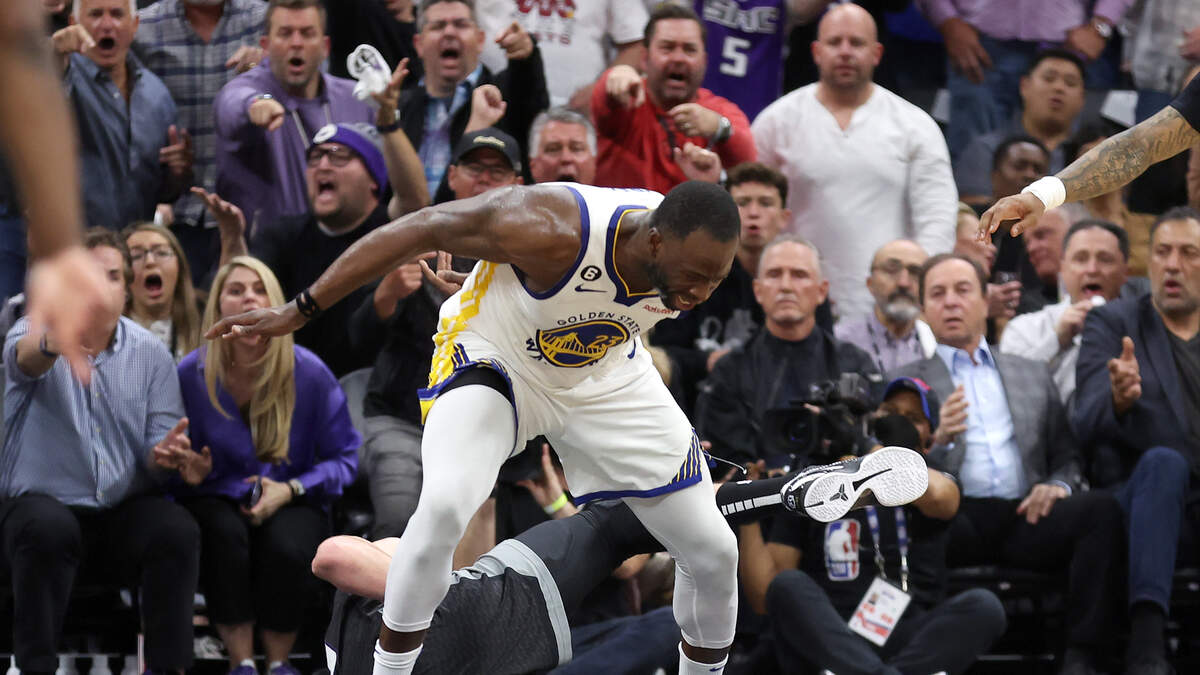 The referees went to the replay monitor to determine whether or not Draymond Green would be ejected for a hard stomp he delivered to Domantis Sabonis.